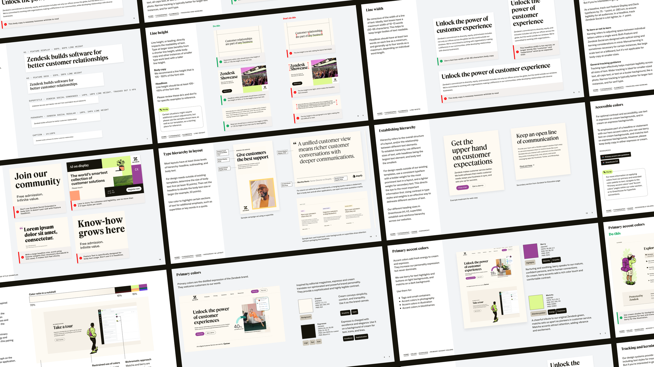 We also considered practicality and equity—while we as a creative team are passionate about making beautiful things, beauty has little purpose in a brand system if it can’t easily be executed or extended upon, or if the end results aren’t accessible to all users and members of the Zendesk audience.