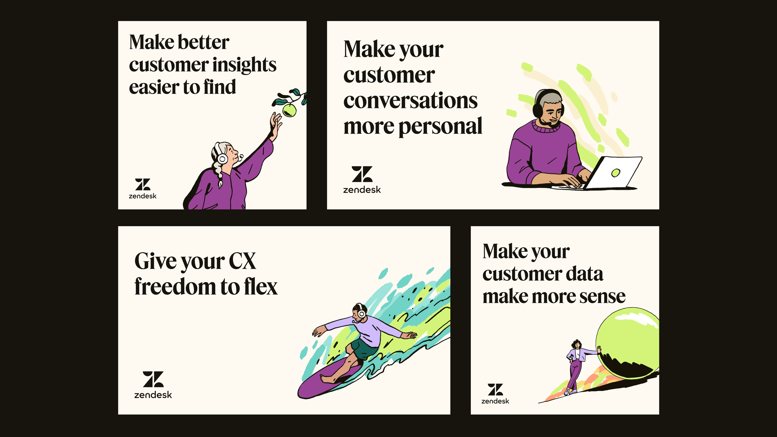 Develop an ownable, distinct visual expression and voice that positions Zendesk as a leader in the CX space